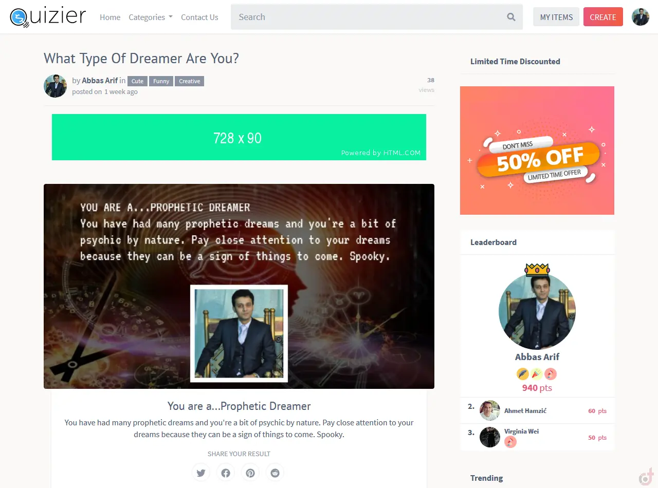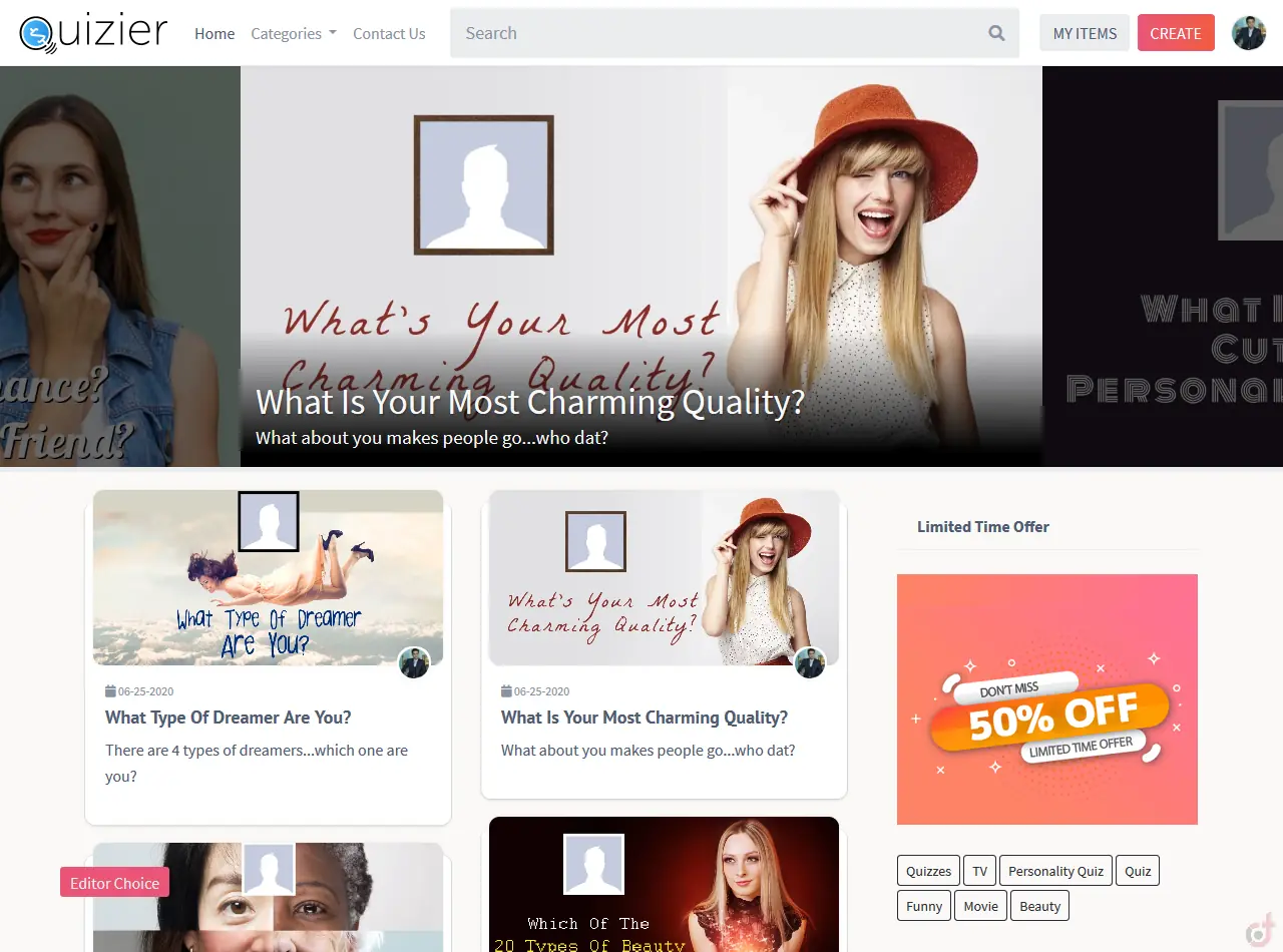 Quizier is the best way to present your business, website, blog, entertainment, viral quizzes website, polls and more